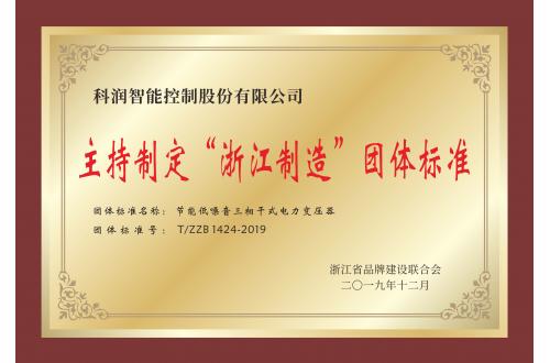 主持制定“浙江制造”團(tuán)體標(biāo)準(zhǔn)